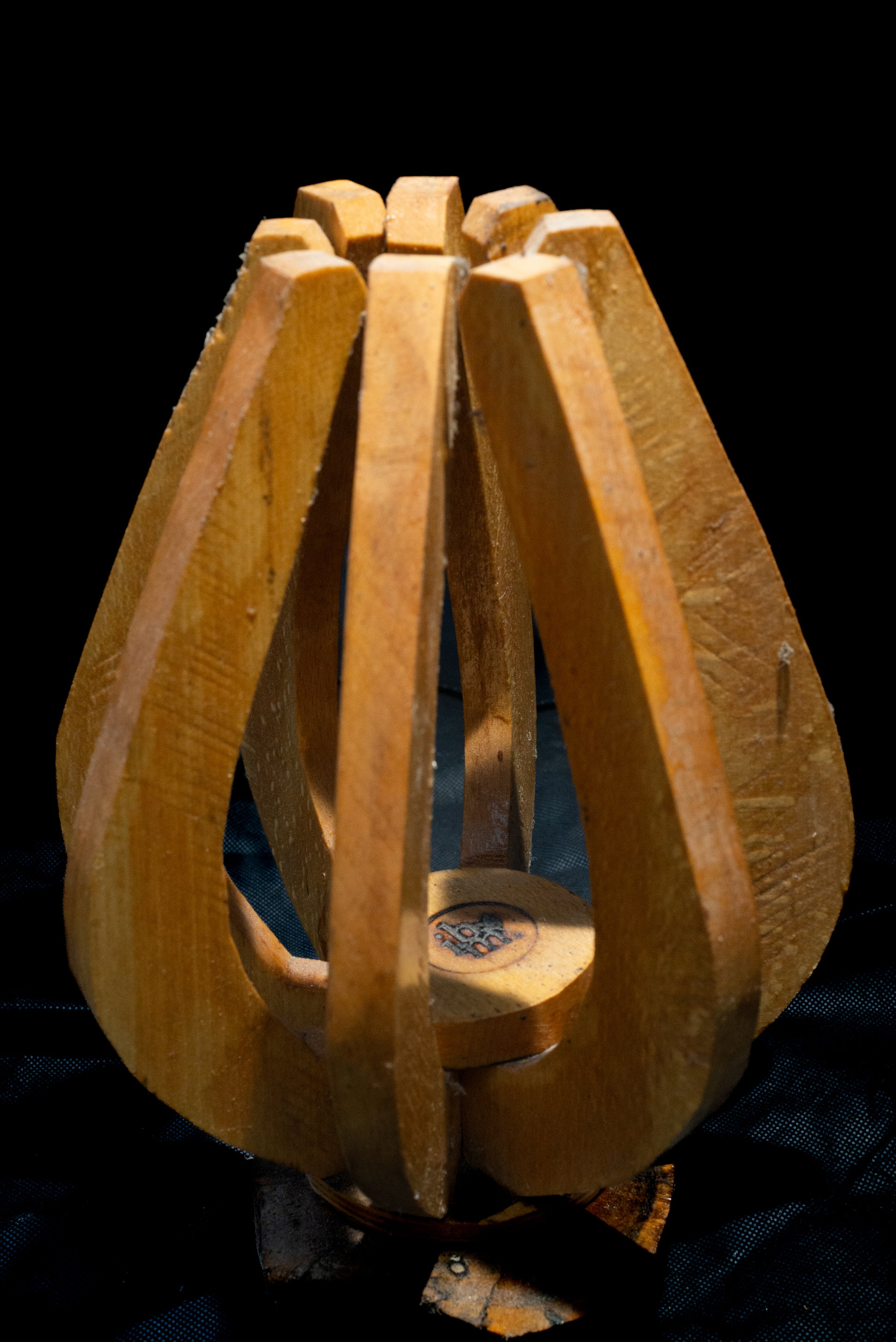 This uniquely sculpted piece resembles the delicate form of a blooming lotus, hand-carved from warm-toned wood. With its flowing curved slats and solid base, it adds a soft organic aesthetic to any space. Ideal as a sculptural accent, candle base, or minimalist lamp housing, it captures both craftsmanship and natural elegance.