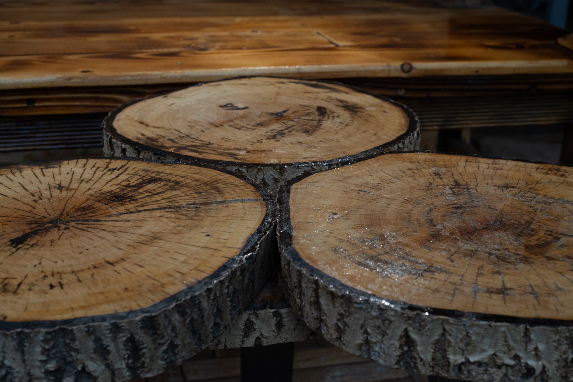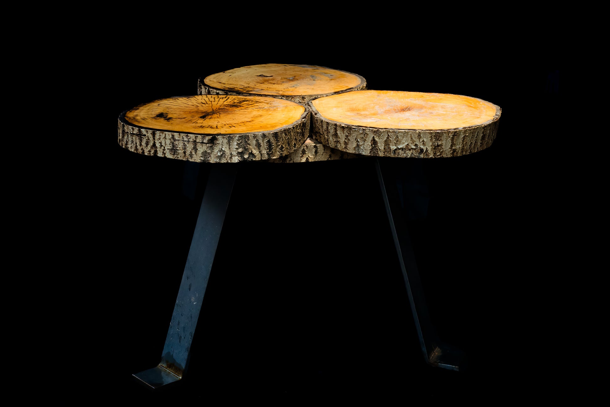 π² Triple Slice Solid Wood Table β Natural & Industrial Fusion